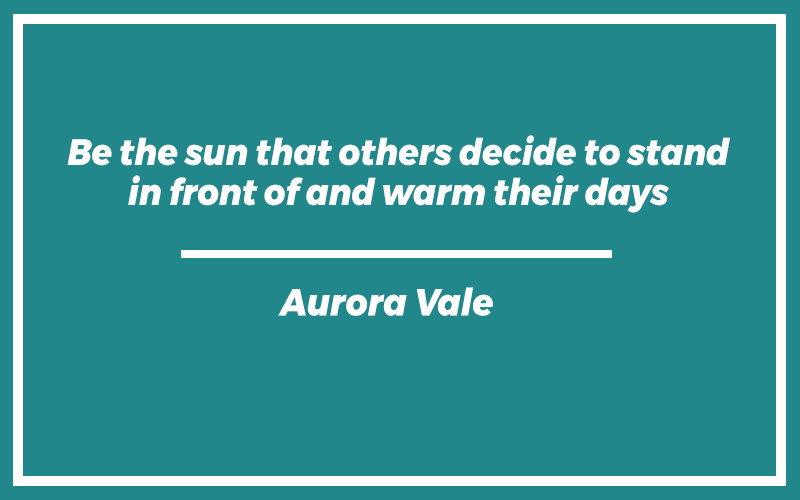 “Be the sun that others decide to stand in front of and warm their days.” – Aurora Vale