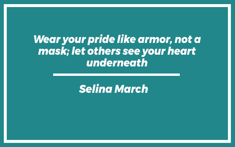 “Wear your pride like armor, not a mask; let others see your heart underneath.” – Selina March