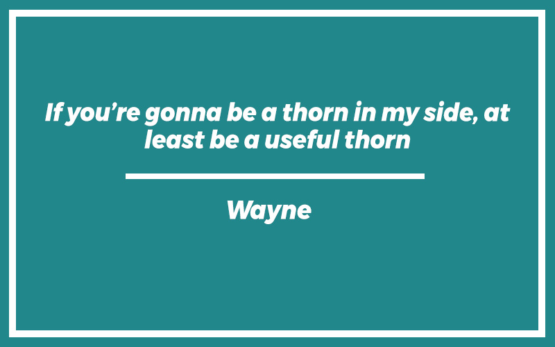 “If you’re gonna be a thorn in my side, at least be a useful thorn.” – Wayne