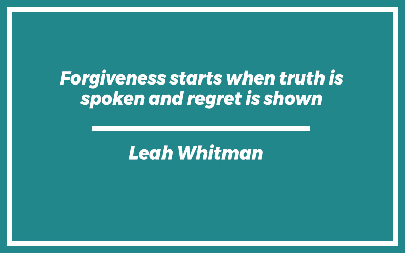 “Forgiveness starts when truth is spoken and regret is shown.” – Leah Whitman
