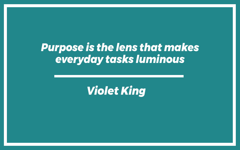 “Purpose is the lens that makes everyday tasks luminous.” – Violet King