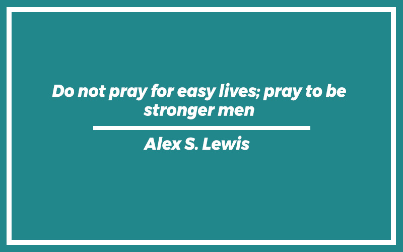 “Do not pray for easy lives; pray to be stronger men.” – Alex S. Lewis