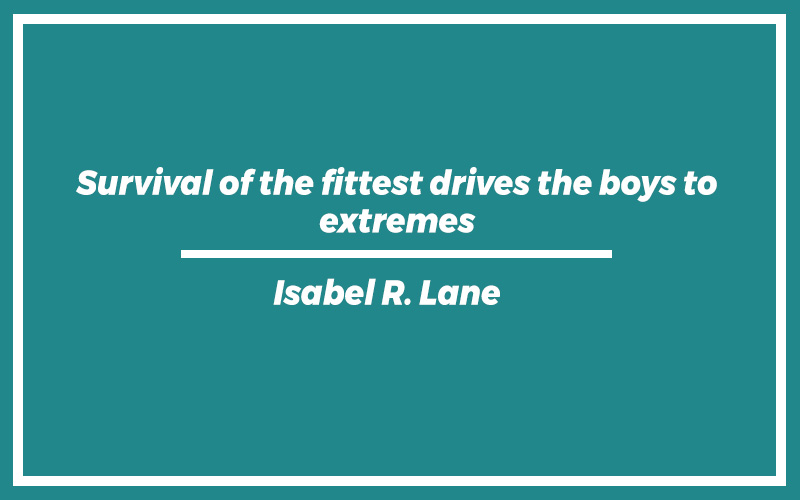 “Survival of the fittest drives the boys to extremes.” – Isabel R. Lane