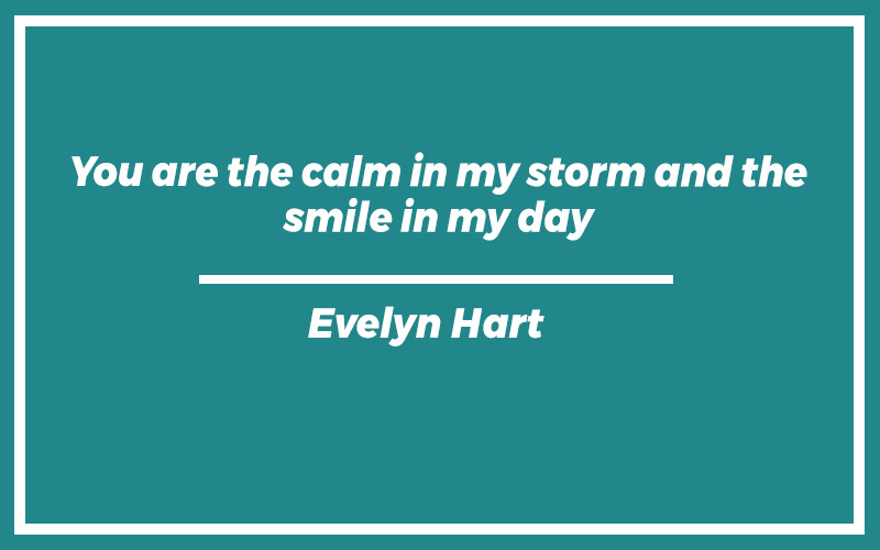“You are the calm in my storm and the smile in my day.”Evelyn Hart