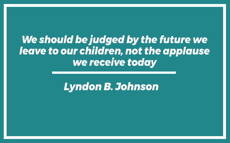 “We should be judged by the future we leave to our children, not the applause we receive today.” – Lyndon B. Johnson