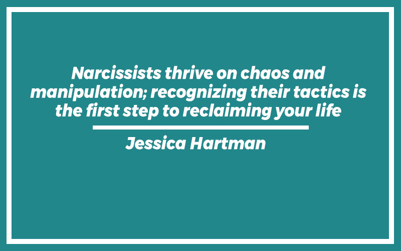 “Narcissists thrive on chaos and manipulation; recognizing their tactics is the first step to reclaiming your life.” – Jessica Hartman