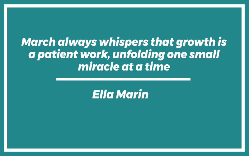 “March always whispers that growth is a patient work, unfolding one small miracle at a time.” – Ella Marin