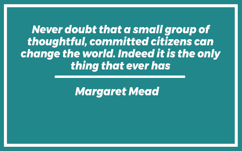 “Never doubt that a small group of thoughtful, committed citizens can change the world. Indeed it is the only thing that ever has.” – Margaret Mead