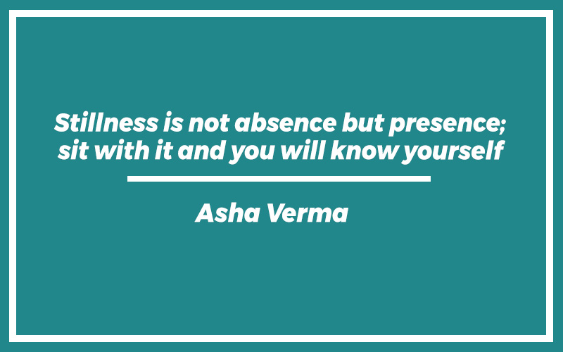 “Stillness is not absence but presence; sit with it and you will know yourself.” – Asha Verma