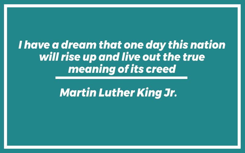 “I have a dream that one day this nation will rise up and live out the true meaning of its creed.” – Martin Luther King Jr.