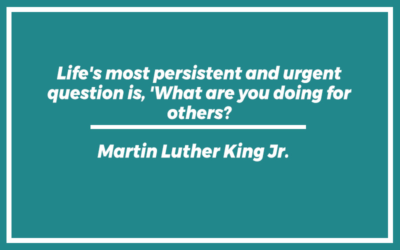 “Life’s most persistent and urgent question is, ‘What are you doing for others?'” – Martin Luther King Jr.