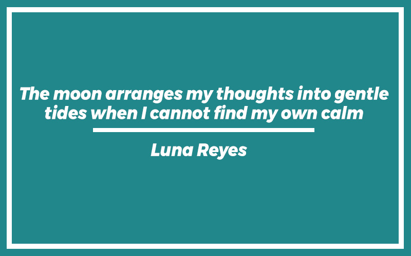 “The moon arranges my thoughts into gentle tides when I cannot find my own calm.” – Luna Reyes