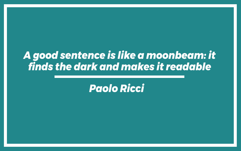 “A good sentence is like a moonbeam: it finds the dark and makes it readable.” – Paolo Ricci