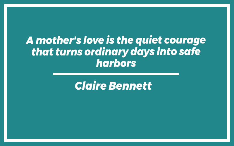 “A mother’s love is the quiet courage that turns ordinary days into safe harbors.” – Claire Bennett