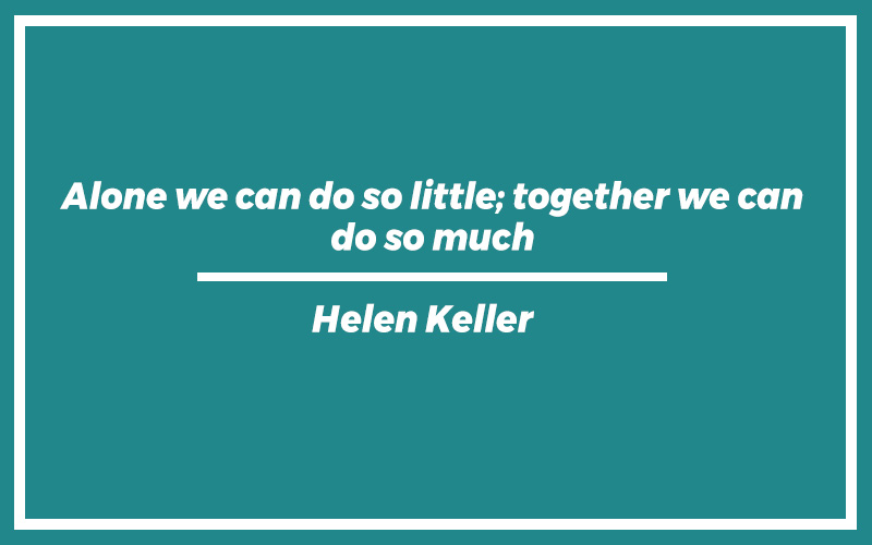 “Alone we can do so little; together we can do so much.” – Helen Keller