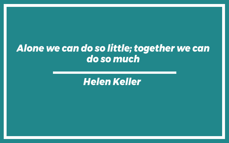 “Alone we can do so little; together we can do so much.” – Helen Keller