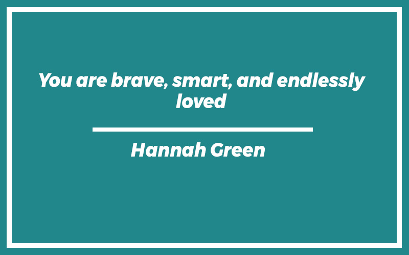“You are brave, smart, and endlessly loved.” – Hannah Green