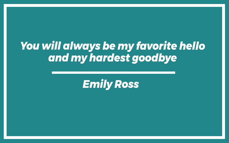 “You will always be my favorite hello and my hardest goodbye.” – Emily Ross