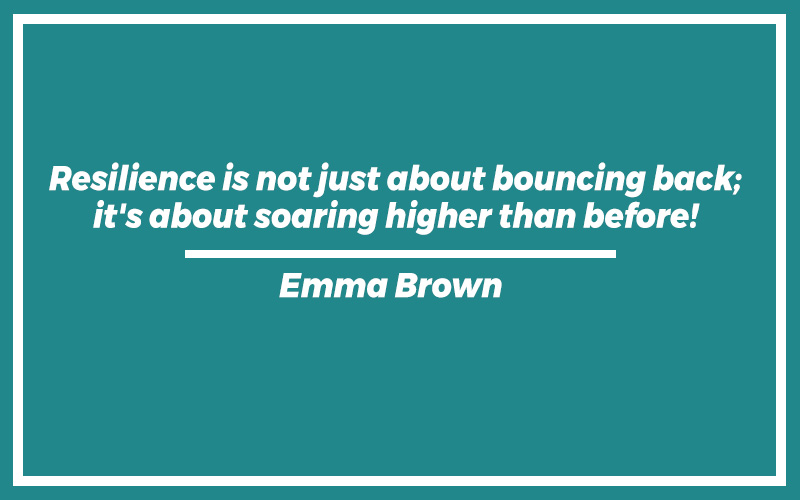 “Resilience is not just about bouncing back; it’s about soaring higher than before!”Emma Brown
