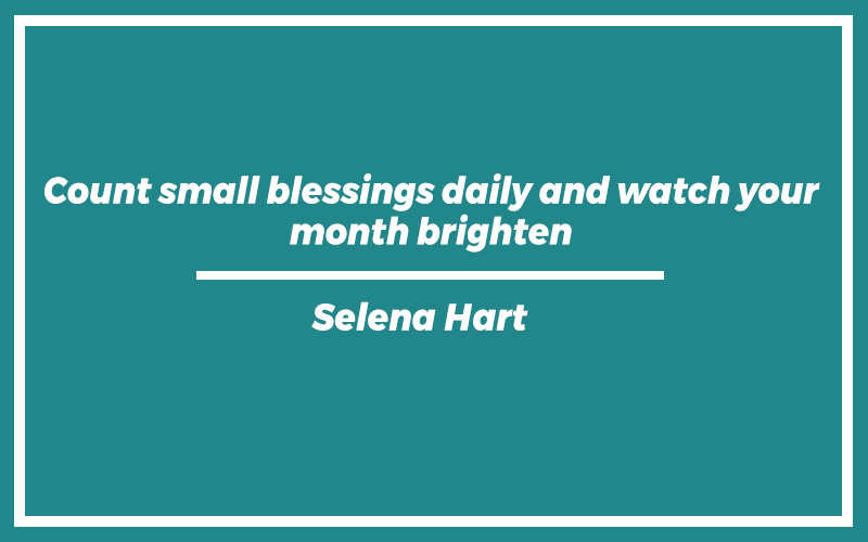 “Count small blessings daily and watch your month brighten.” – Selena Hart