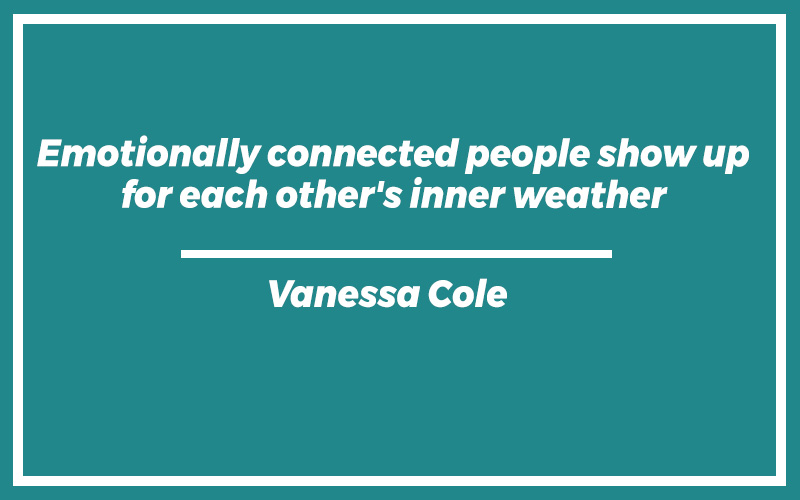“Emotionally connected people show up for each other’s inner weather.” – Vanessa Cole