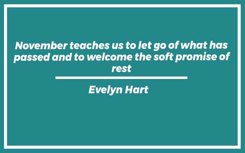 “November teaches us to let go of what has passed and to welcome the soft promise of rest.”Evelyn Hart