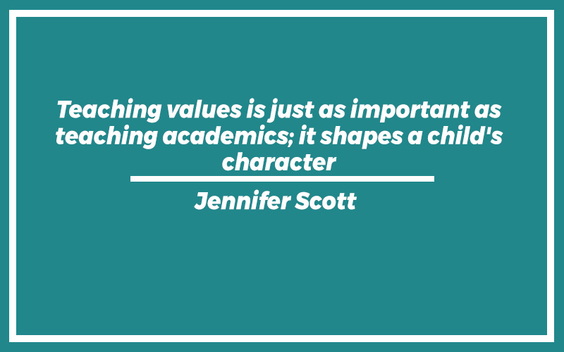 “Teaching values is just as important as teaching academics; it shapes a child’s character.” – Jennifer Scott