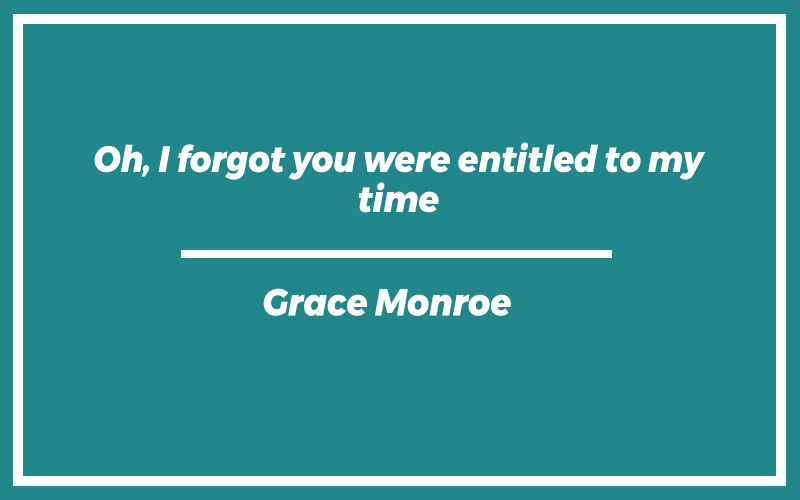 “Oh, I forgot you were entitled to my time.” – Grace Monroe