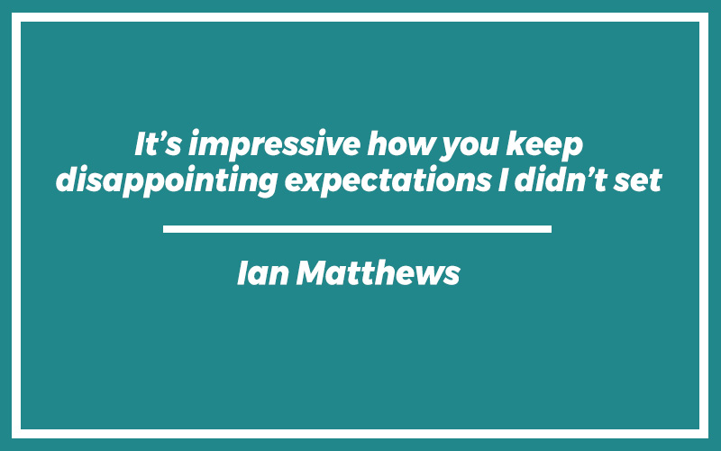 “It’s impressive how you keep disappointing expectations I didn’t set.” – Ian Matthews