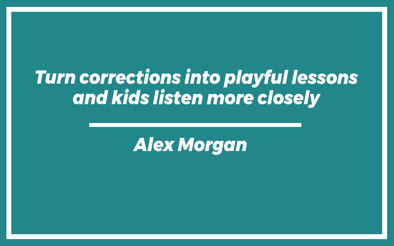 “Turn corrections into playful lessons and kids listen more closely.” – Alex Morgan