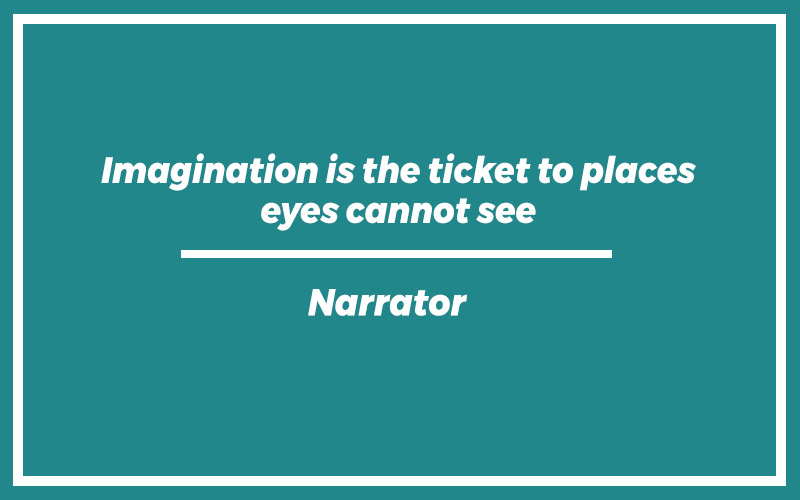 “Imagination is the ticket to places eyes cannot see.”Narrator