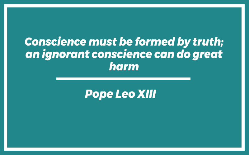 “Conscience must be formed by truth; an ignorant conscience can do great harm.”Pope Leo XIII