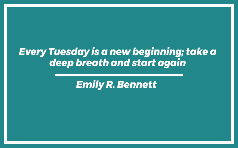 “Every Tuesday is a new beginning; take a deep breath and start again.” – Emily R. Bennett