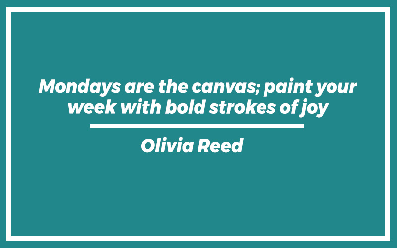 “Mondays are the canvas; paint your week with bold strokes of joy.”Olivia Reed