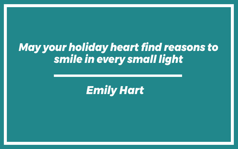“May your holiday heart find reasons to smile in every small light.” – Emily Hart