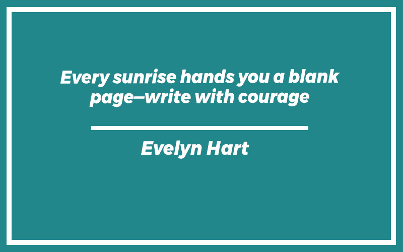 “Every sunrise hands you a blank page—write with courage.” – Evelyn Hart