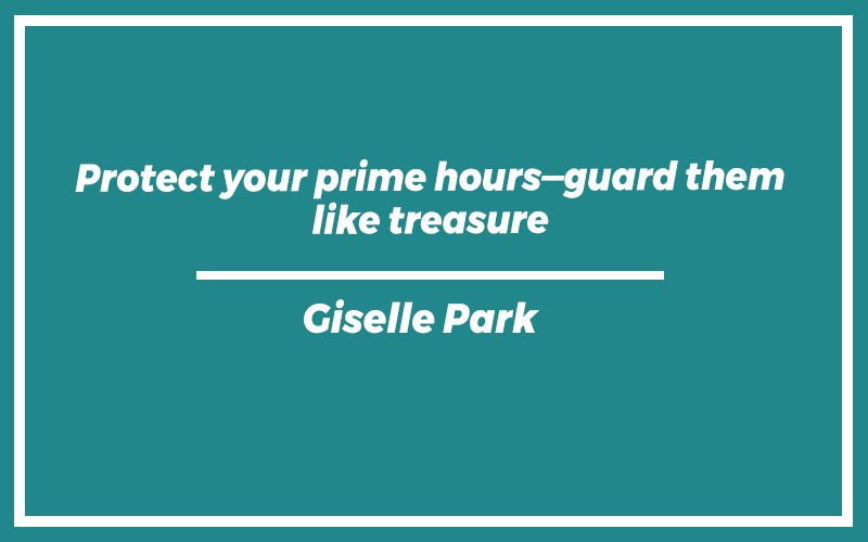 “Protect your prime hours—guard them like treasure.” – Giselle Park