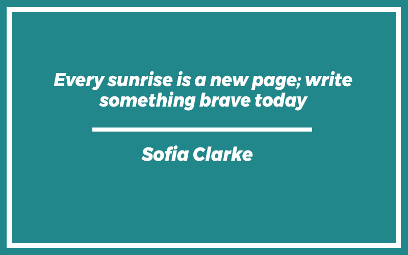 “Every sunrise is a new page; write something brave today.”Sofia Clarke