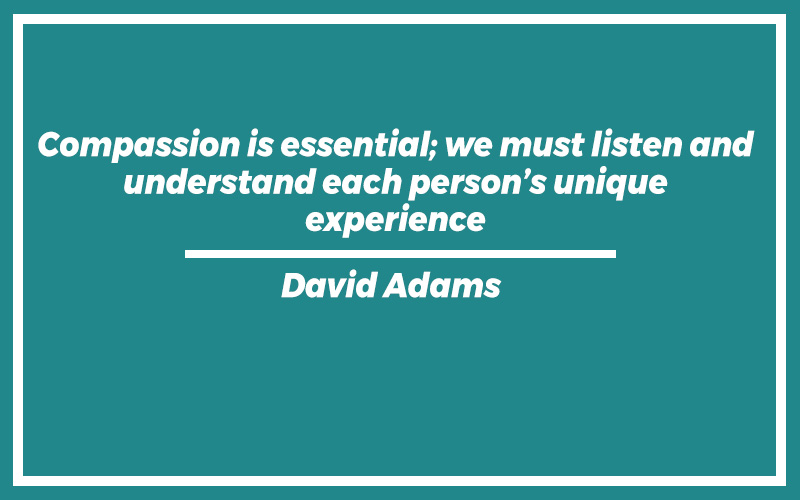“Compassion is essential; we must listen and understand each person’s unique experience.” – David Adams