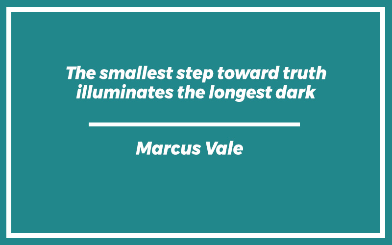“The smallest step toward truth illuminates the longest dark.”Marcus Vale