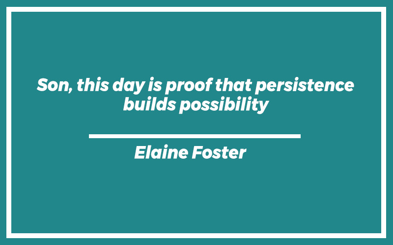 “Son, this day is proof that persistence builds possibility.” – Elaine Foster