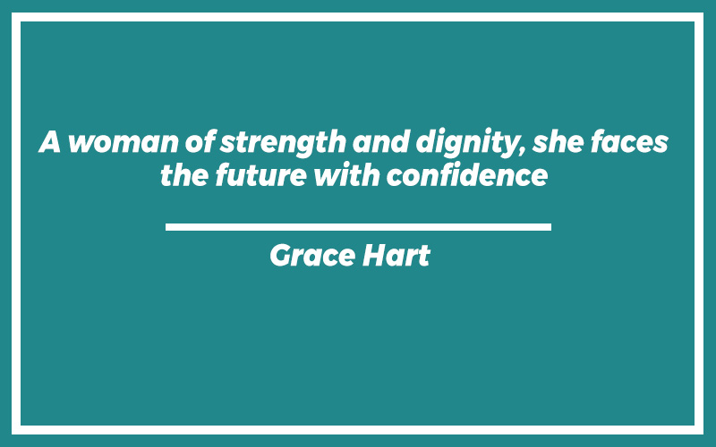 “A woman of strength and dignity, she faces the future with confidence.”Grace Hart