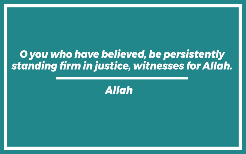 “O you who have believed, be persistently standing firm in justice, witnesses for Allah.” – Allah