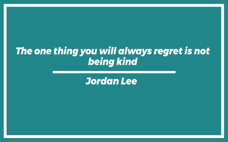“The one thing you will always regret is not being kind.” – Jordan Lee