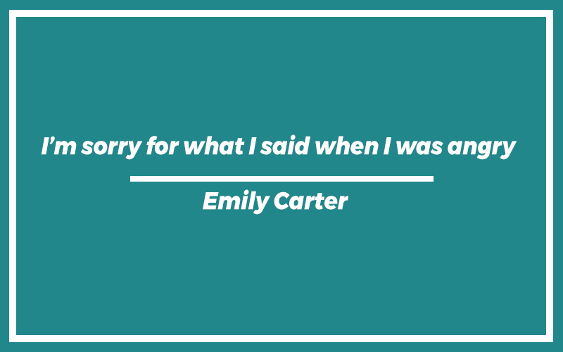 “I’m sorry for what I said when I was angry.” – Emily Carter