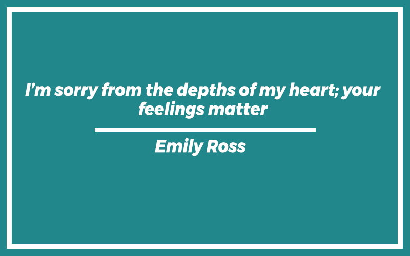 “I’m sorry from the depths of my heart; your feelings matter.” – Emily Ross