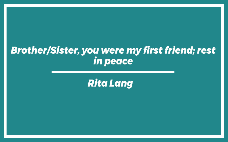 “Brother/Sister, you were my first friend; rest in peace.” – Rita Lang