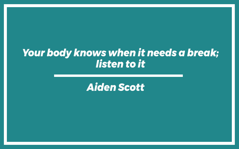 “Your body knows when it needs a break; listen to it.” – Aiden Scott