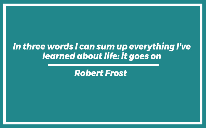 “In three words I can sum up everything I’ve learned about life: it goes on.” – Robert Frost