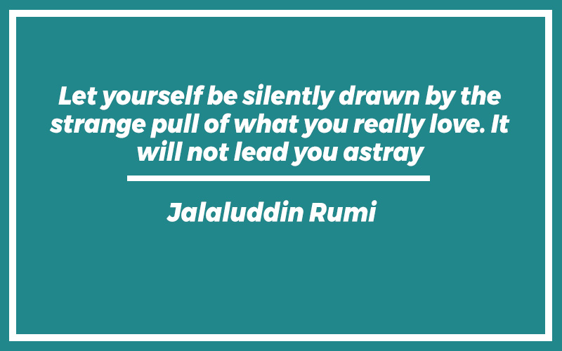 “Let yourself be silently drawn by the strange pull of what you really love. It will not lead you astray.”Jalaluddin Rumi